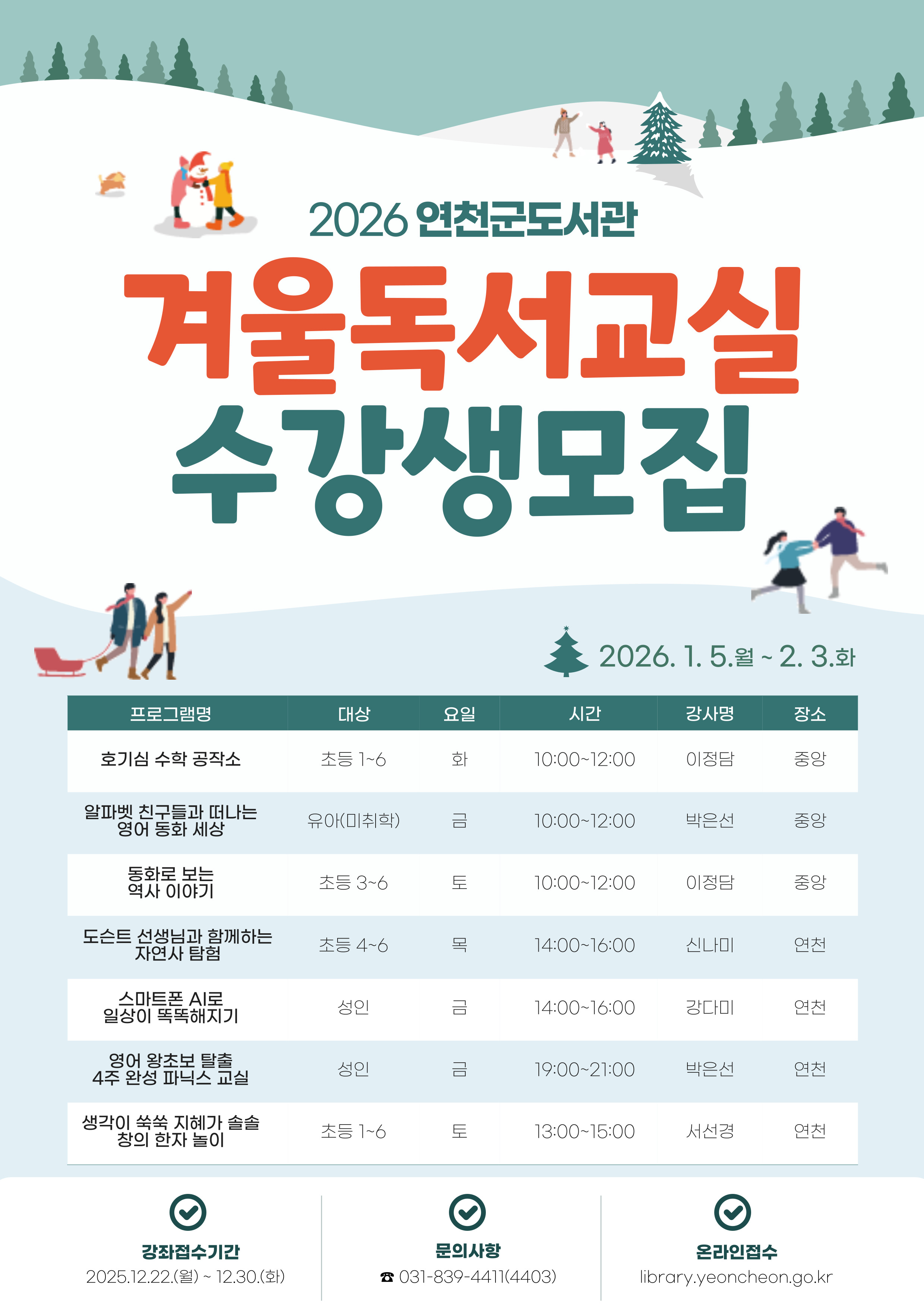 2026년 연천군도서관 겨울독서교실 수강생 모집