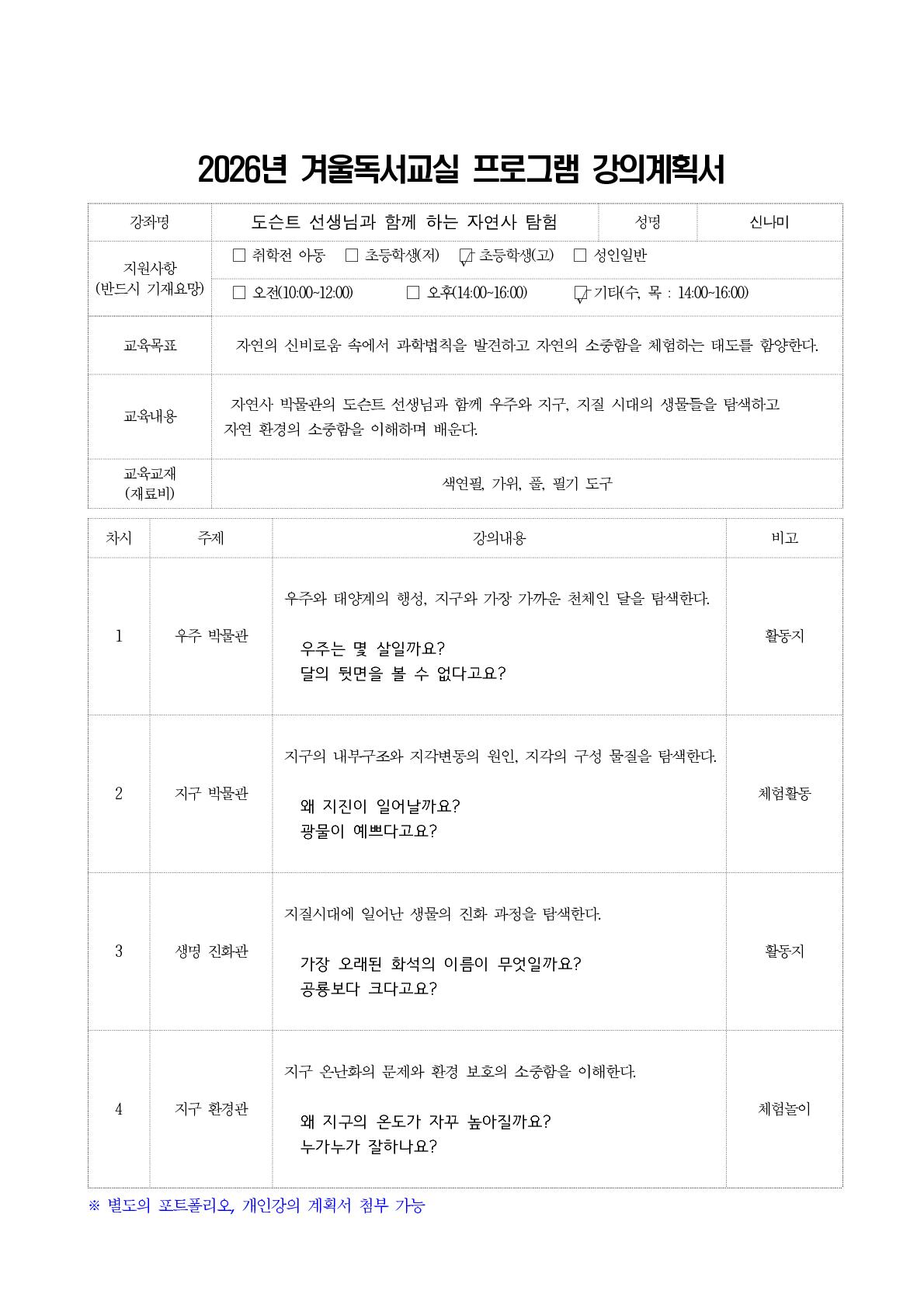 | 강좌/행사명 | 종료 도슨트 선생님과 함께 하는 자연사 탐험 |