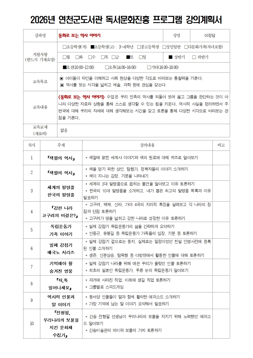 | 강좌/행사명 | 종료 동화로 보는 역사 이야기 |