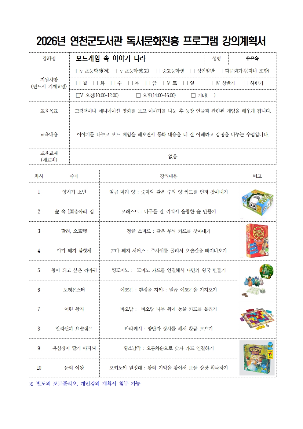 | 강좌/행사명 | 종료 보드게임 속 이야기 나라 |
