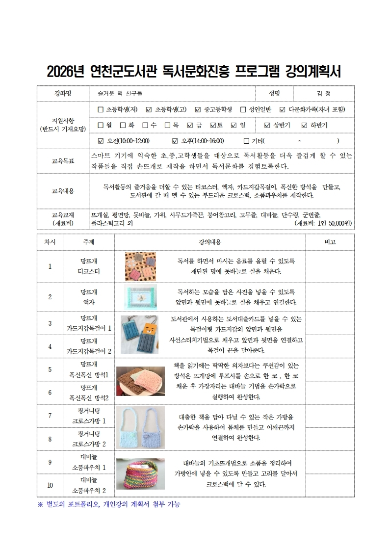 | 장소 | 연천도서관 문화강좌실 |
