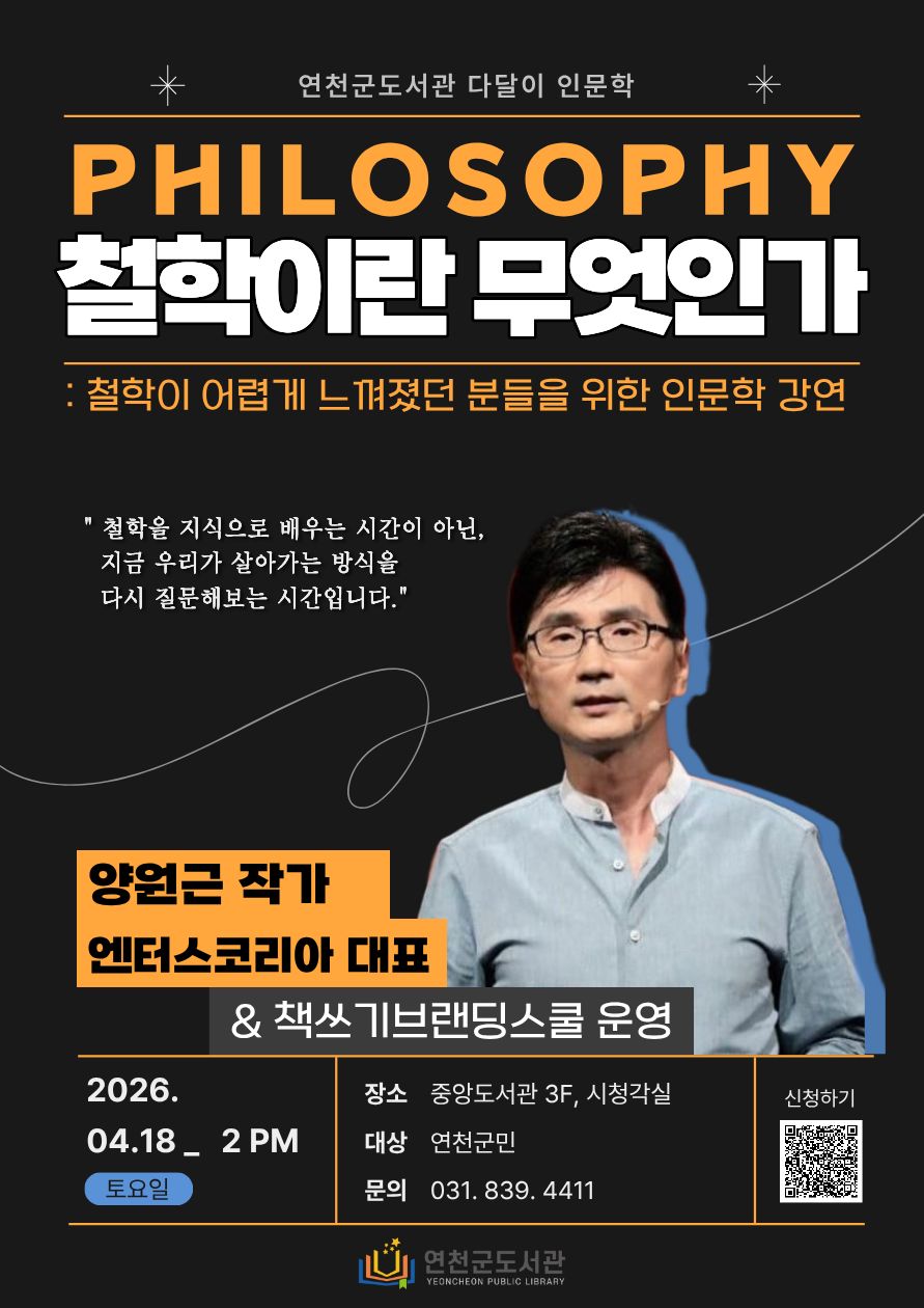 | 강좌/행사명 | 접수중 다달이 인문학 : 4월 「철학이란 무엇인가」 |